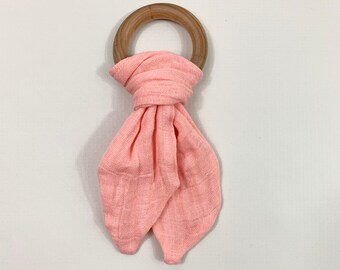 Organic teething ring, teething ring, wooden teething ring, organic wooden teething ring, baby shower gift, bunny ear teether, baby birds