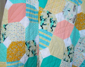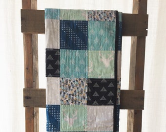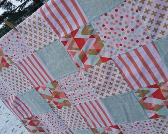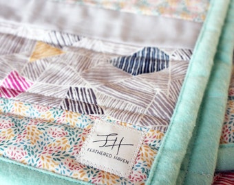 Modern Gender Neutral Star Baby Quilt in mint and gray Charcoal Gray Steel Grey for Baby Toddler Teen Lap Quilt Throw or Prop