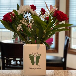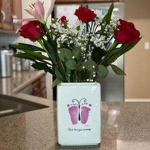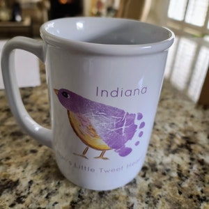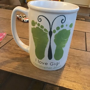Keywords: Baby footprint art, handprint art, footprint art, baby keepsake, in loving memory, print kit, mothers day, fathers day, grandparents day, new baby, baby birth announcement, handprint mug, handprints, footprints, ink-less print kit