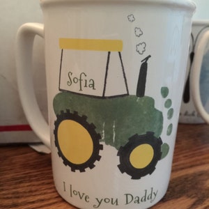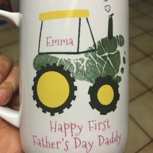 Read the full title Your child's footprints! Perfect Grandpa and Daddy christmas gift, baby footprint art, baby first christmas, Tractor Footprint Mug 102_mug