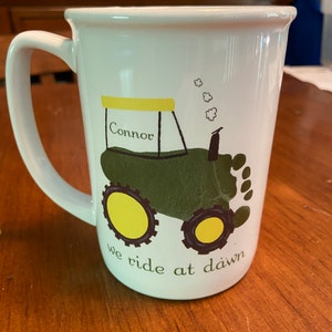 I ordered a footprint tractor mug for Father's Day and it came out perfect! Exactly as pictured and ordered. My husband loved it and I was extremely satisfied with the processing and shipping times as well. Very quick turnaround. Thank you!!!