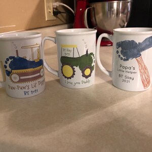 Your child's footprints! Perfect Grandpa and Daddy christmas gift, baby footprint art, baby first christmas, Tractor Footprint Mug 102_mug