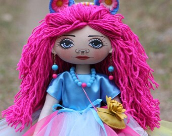 Amélie Sailor - Handmade kitty art doll - OOAK soft doll - Nautical nursery decor - Unique doll - Christmas gift for girl - Baby shower gift