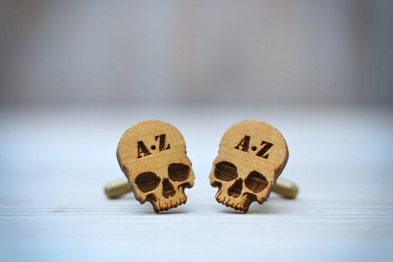 SKULL Cufflinks - CUSTOM Monogram Initials wood cuff links