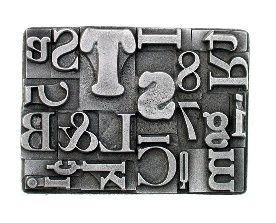 Get your type on! This is a buckle cast in LEAD FREE pewter from actual letterpress pieces. Perfect for all those graphic designers, font lovers in your life. Try it with the brand new recycled rubber belt, sold separately. Fits belts up to 1.5" in width.