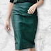 Vintage green black animal print wool knit fitted high waist mini midi skirt XS
