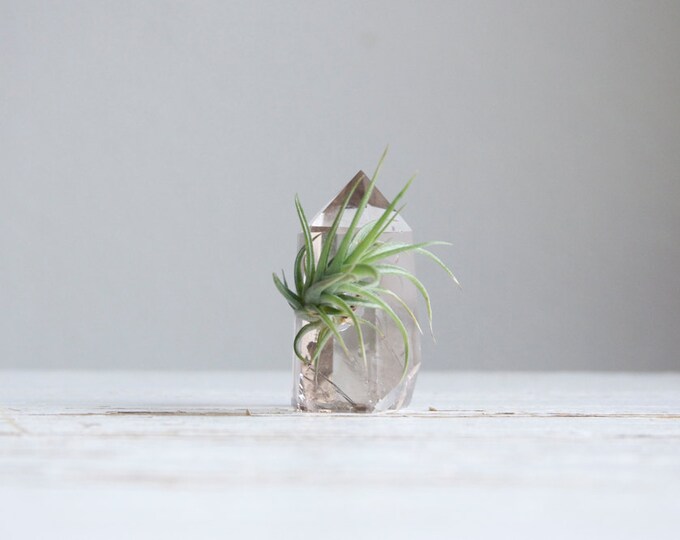 Air Plant Garden on Smokey Quartz Crystal Point