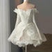 Open Back Engagement Dress White Long Sleeve Satin Dress Bridal Dress For Civil Wedding Dress For Reception Dancing Elopement Wedding Dress