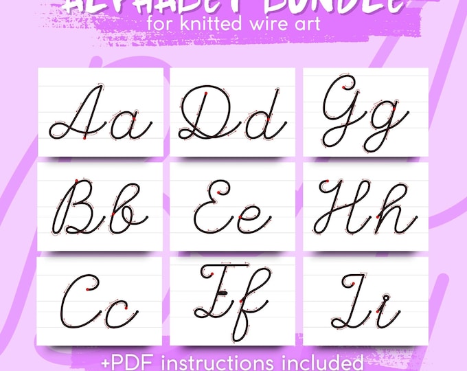 Plantilla de caligrafía de la A a la Z con el alfabeto completo, para arte con alambre, para imprimir, para arte con alambre, letras mayúsculas y minúsculas, plantillas de letras Tricotin, PDF