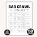 Bar Crawl Bingo Printable, Fun Bar & Pub Crawl Games, Bar Scavenger Hunt, Ultimate Bar Crawl Bingo, Party-Ready Bar Crawl Printables