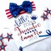 Our Little Miss 4th of July shirt is PERFECT for your little firecracker! M2M pants, skirts, shorts, and accessories are available for this design so please don't hesitate to convo me about making this an entire 4th of July outfit.