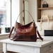 A handmade patchwork shoulder bag, with an outside zipped pocket, and an inside zipped pocket. It also has a water-proof lining.