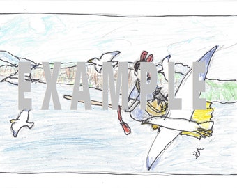 Kiki and her cat Jiji from KIki's Delivery Service (digital print from black ink and colored pencil on white Bristol Board)
