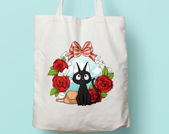 Jiji from Kiki's delivery service Ghibli kawaii organic cotton tote bag