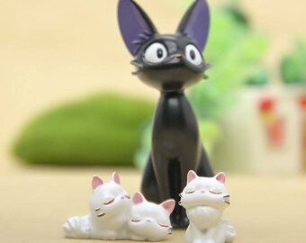 3pcs kiki's delivery service Black Cat Jiji & Girlfriend Studio Ghibli Miniature Terrarium Figurine set