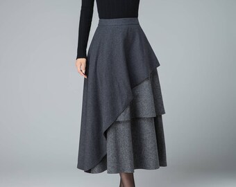 Gray skirt, wool skirt, midi skirt, womens skirt, warm skirt, winter skirt, gray wool skirt, warm winter skirt, womens wool skirt C707.
