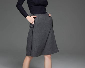 Gray wool skirt, winter skirt, womens skirt, midi skirt, gray wool skirt, gray midi skirt, winter wool skirt, womens wool skirt C1003.