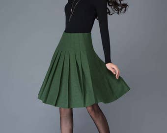 Wool pleated skirt, green skirt, midi skirt, swing skirt, wool skirts, office skirt, winter skirt, womens skirts, flare skirt, C1031.