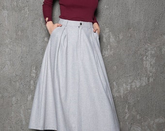 Gray skirt, wool skirt, winter skirt, womens skirt, midi skirt, gray wool skirt, gray midi skirt, winter wool skirt, womens wool skirt C1003