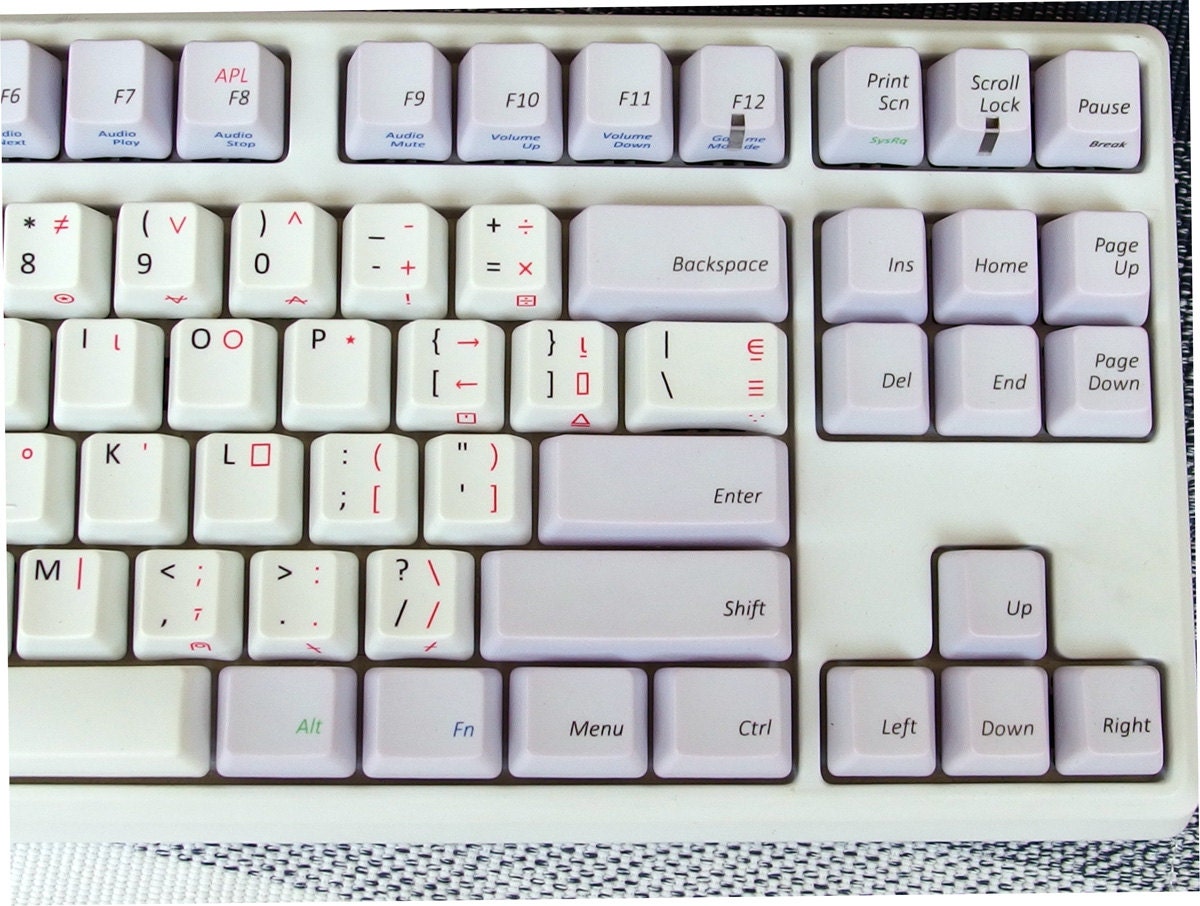 5. The red symbols are genuine APL stuff. You can use this item as true APL keyboard, of course.