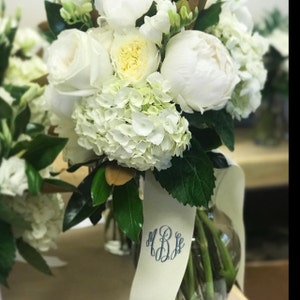 our 3 inch grosgrain ribbon bouquet wraps are the perfect adornment for you and your monogram loving bridesmaids bouquets.