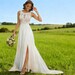 Modest chiffon wedding dress with sleeves, Chiffon Escape Dress, a-line wedding dress, ivory dress, flowing wedding dress.