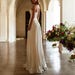 EVANGELINE / A-Line Chiffon Wedding Dress: Illusion Train, Deep Plunge, Boho Bridal Gown