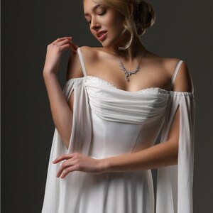 Armor Wedding Dress,Gothic Elven Warrior Princess Pagan Druid Medieval Handfasting Acotar Dress With Train Wide Bell Sleeve&Cape Cloak Shrug