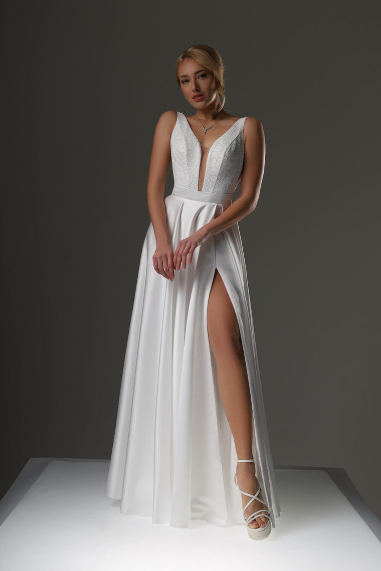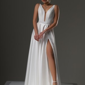 Simple Wedding Dress, Elopement Dress, Minimalist Wedding Dress, Civil Wedding Dress, High Slit Dress, White Evening Gown, CHARLOTTE