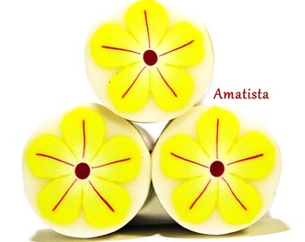 Polymer clay flower cane: Raw polymer clay cane - Millefiori cane supplies - Yellow-burgundy flower cane - Supplies for jewelers