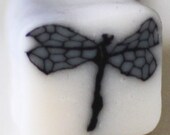 A dragonfly cane with dainty wings. The cane background is translucent polymer clay, making it perfect to use in layering, bead making or nail art. This type of cane is used to make the type of beads found in this section of my shop: http://www.etsy.com/shop/tooaquarius?section_id=11202909