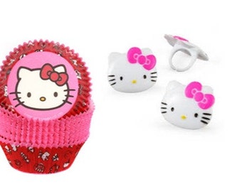 12 Hello Kitty Cupcake Toppers, Sanrio Hello Kitty Cupcake Topper