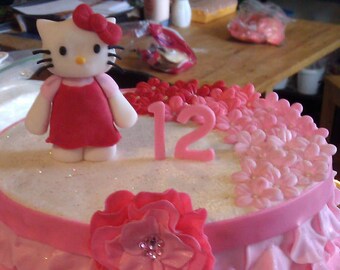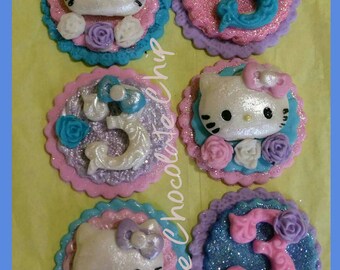 12 Hello Kitty Inspired Fondant Cupcake/ Cake Topper -Hello Kitty Cake- Hello Kitty Cupcake Topper Hello Kitty Party