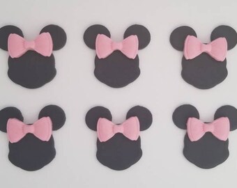 12 Minnie Mouse Head Cupcake Fondant Toppers