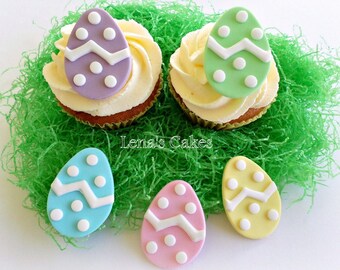 Easter Cupcake Fondant Edible Toppers, Edible Sugar Easter Eggs, Easter Party Edible Decor, Chevron Polka Dot Fondant Toppers
