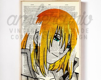 Golden Howl Smiling Down Studio Ghibli Moving Castle Inspired Print on an Antique Unframed Upcycled Book Page