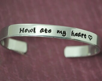 Howl's Moving Castle Inspired - Howl Ate My Heart - A Hand Stamped Bracelet in Aluminum or Sterling Silver