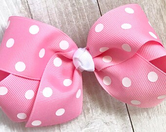 Lottie-da - Polka Dot Hair Bow - Pink and Yellow Hair Bow - Girls Hair Bow - Toddler Hair Bow - Daisy - Boutique Hair Bow - Hair Accessory