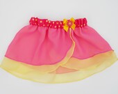 Ta-da! It's the Lottie-da!!! This delightful Pink and Yellow Ballet Skirt is designed especially for you and Miss Lottie! When you look at this ballet skirt you can see all of Miss Lottie's favorites! She love, love, loves pink, yellow, polka dots, bows and daisies! Pair this adorable ballet skirt with the matching Pink and Yellow Polka Dot Hair Bow!