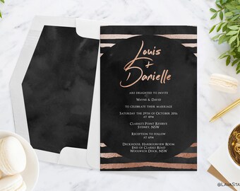 Louis Suite : Printable Wedding Invitation, Rose Gold, Custom, Digital Download, Copper Foil, Engagement, Stripes, Black & Rose Gold