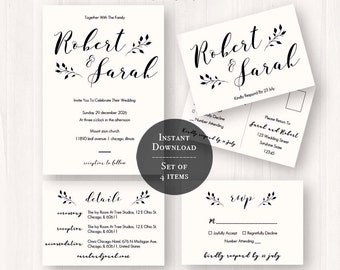 Fairfax: Instant Printable Wedding Invitation Template Suite, Wedding Invitation Suite, Printable Kit, Editable Invite, PDF Instant Download