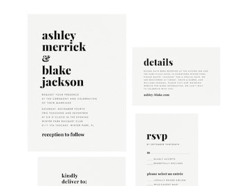 Modern Printable Wedding Invitation Set, Printable Wedding Suite, Custom Wedding Invites, Wedding Invitation Set, Rustic Minimalist Invites