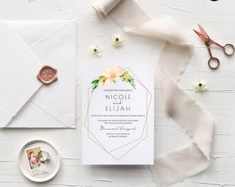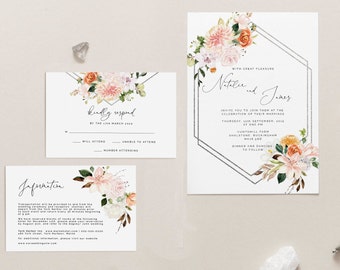 Blush Floral Geometric Wedding Invitation set rustic wedding invitation editable wedding suite printable wedding invite instant download 128