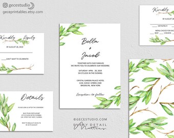 Greenery Wedding Invitation Suite Printable Template Editable PDF Botanical Boho Wedding Invitation - Digital Download - GecePrintables #BBG