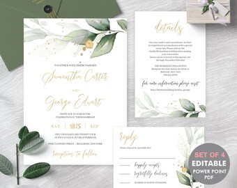Greenery Wedding Invitation Template, Eucalyptus Wedding Invitation Suite, Printable Wedding Invitation Set INSTANT DOWNLOAD GEGS65