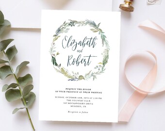 Greenery Wreath Wedding Invitation Suite | Printable Wedding Invitation
