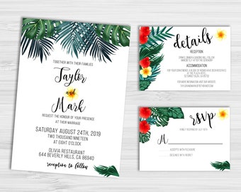 Wedding Invitation Suite Tropical GreenerY Wedding Invitation Beach Wedding Invitation Wedding Invitation Template Suite - PRINTABLE DIGITAL