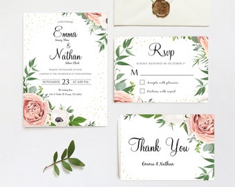 Floral Wedding Invitation Suite • Printable • Invitation • RSVP • Thank You Card