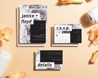 Printable Wedding Invitation Modern, Minimalist Wedding Invitation Suite Printable, Invitation Set, Wedding Invites Marble | Item no. FLO-01
