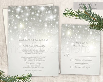 Winter Wedding Invitation Suite Printable Silver Bokeh Wedding Invitation Winter Wedding Invite Falling Snow Sparkles Glitter Template